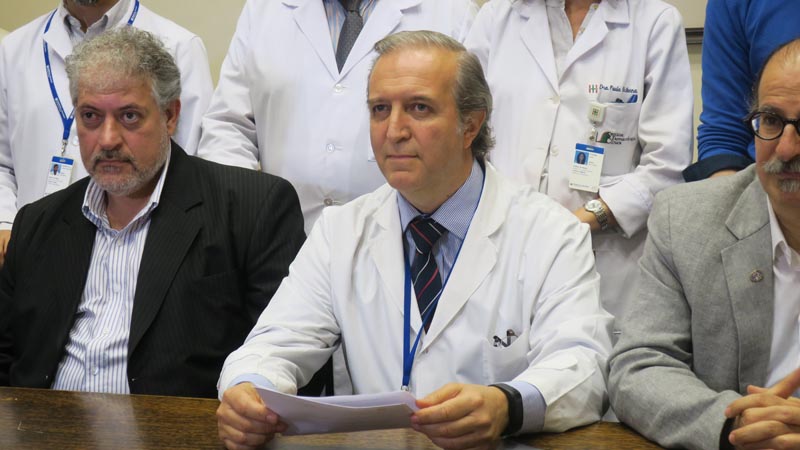 BAS101. BUENOS AIRES (ARGENTINA), 22/11/2016.- De izquierda a derecha, el asesor principal del proyecto, de la Universidad de Virginia EE.UU, el Doctor Daniel Cherñavvsky; el Investigador clínico principal, el Doctor Luis Grosembacher y el Responsable Técnico Principal, el Doctor Ricardo S. Sánchez Peña posan hoy, martes 22 de noviembre de 2016, durante la presentación del primer estudio clínico del páncreas artificial en Buenos Aires (Argentina), elaborado por centro de investigación médica en colaboración con hospitales de varios países de Europa y centros estadounidenses. EFE/Marina Guillén
